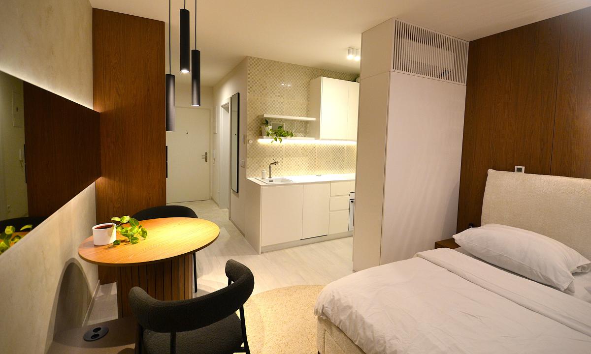Kompletne zariadený štýlový 1-izbový byt v lukratívnej Rezidencii pri Radnici.